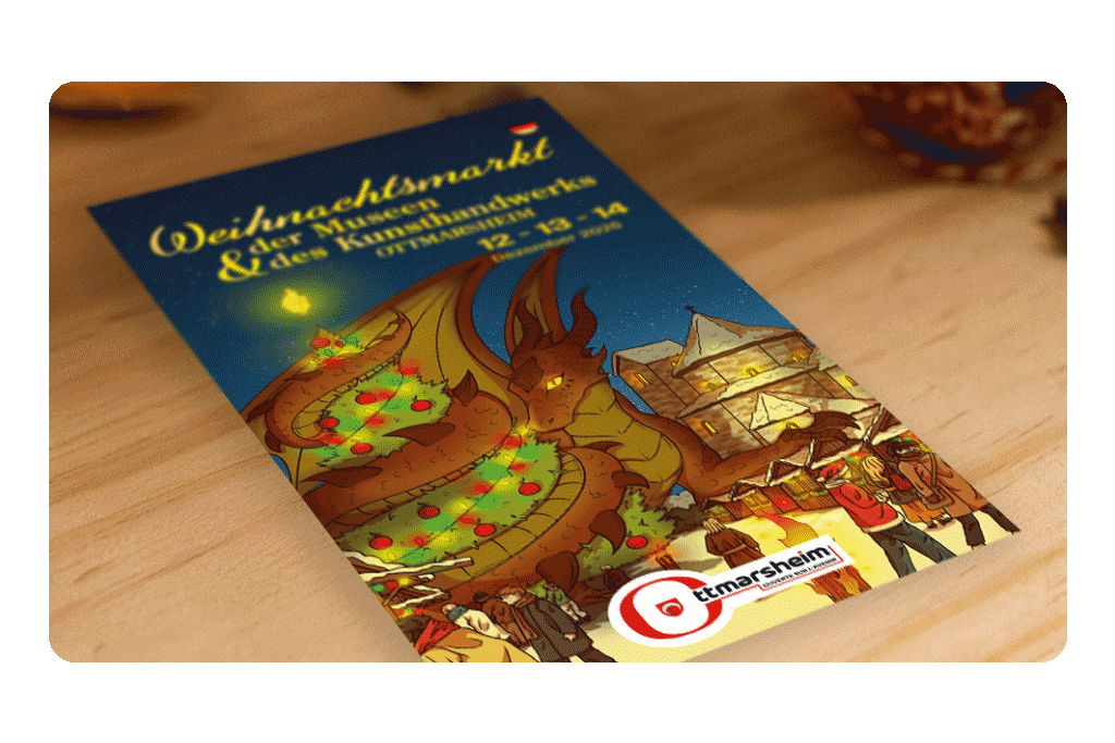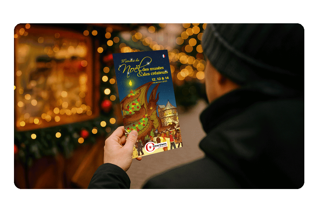 Dans le cadre d’un appel d’offre remporté par PROSPECTIV*, la commune d’Ottmarsheim recherchait un accompagnement complet pour valoriser l’édition 2025 de son marché de Noël.